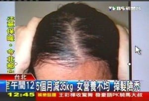 頭頂頭髮稀疏,頭皮清楚可見,梳頭、洗髮隨便一抓,就是一大撮掉髮,這名30多歲女性為了減肥,採用激烈手段,每天不是餓肚子,就是只吃代餐包裹腹,3個月減重超過10公斤,5個月內暴瘦35公斤,卻讓她差點變禿頭。