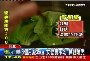 醫生表示減重者常常因為節食,造成營養攝取不均衡,缺乏鋅和鐵,容易導致掉髮和貧血,以掉髮門診來看就有5%的病患,是因為減肥不當,才發生掉髮危機。劉權毅:「比較合適的(減重),大概是1個月目標在1.5到2公斤,當然要搭配規律的運動和飲食控制。」