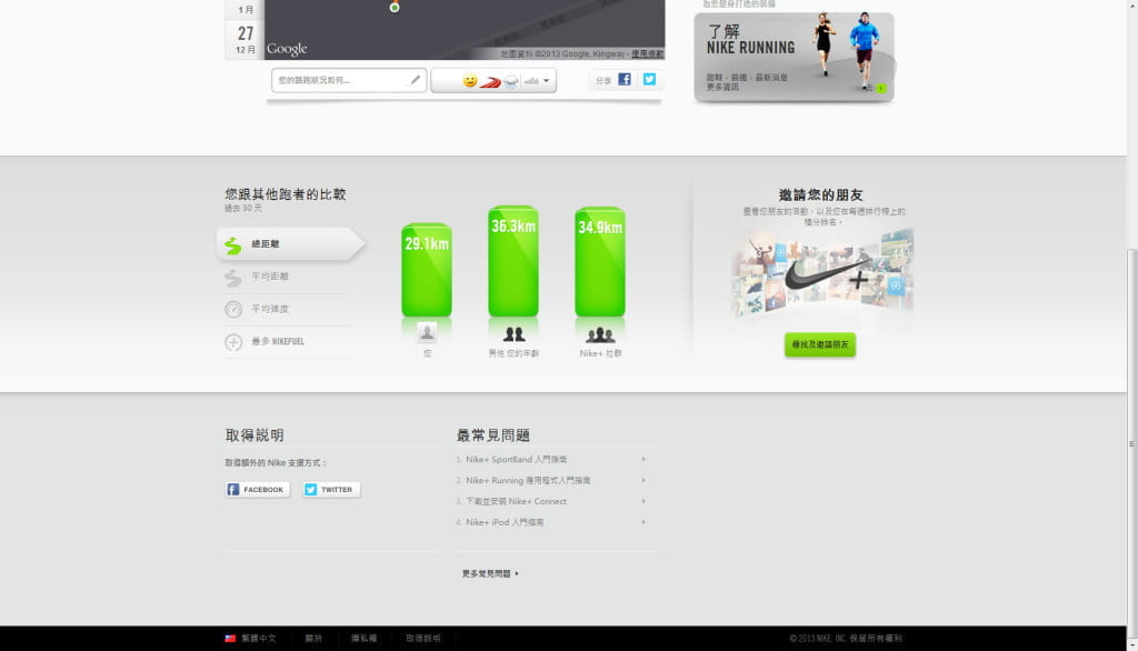 ▼下半部則是跟同年齡的人做比較,包含總距離、平均距離、平均速度與最多NIKEFUEL等。