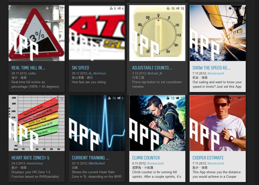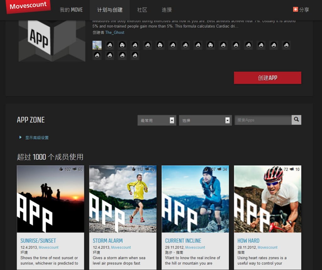 ▼在【計畫與創建】底下有個【APP ZONE】有許多鄉民寫好的APP可以用,看起來好像是智慧型手機的APP喔,像是第一個SUNRISE/SUNSET就蠻適合用在登山健行的模式,告訴你還有多久會日落(白天用時),還有多久太陽會升起(晚上用時)