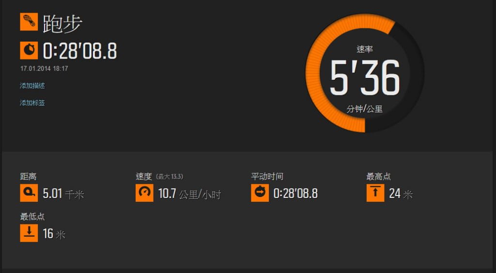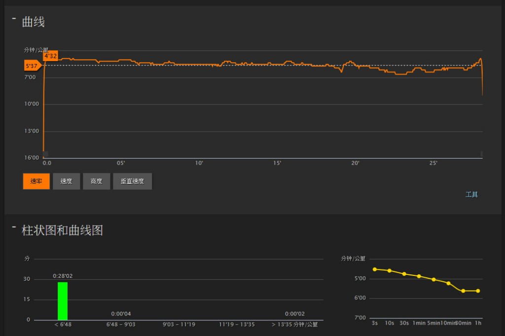 ▼本來沒有ANT+心跳帶時資訊比較少,基本的距離、速度、運動時間等,圖表也是一樣
