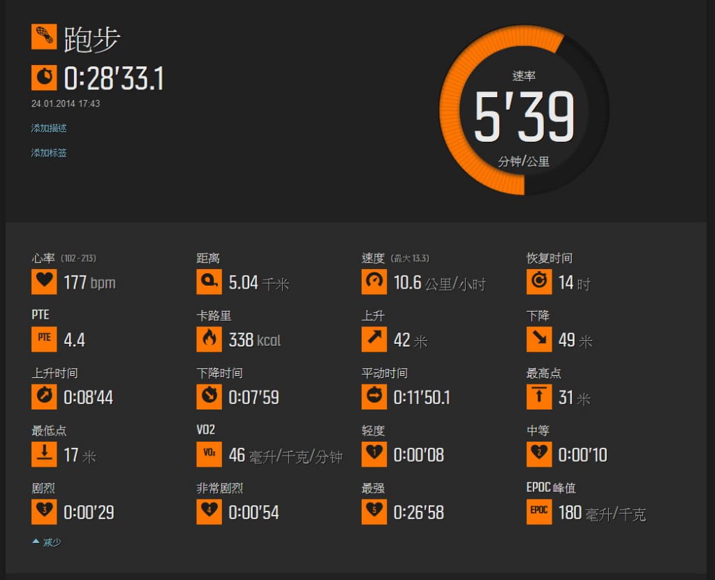 ▼其實Suunto運動錶的參數還很多,例如Peak Training Effect(PTE)、Recovery Time等