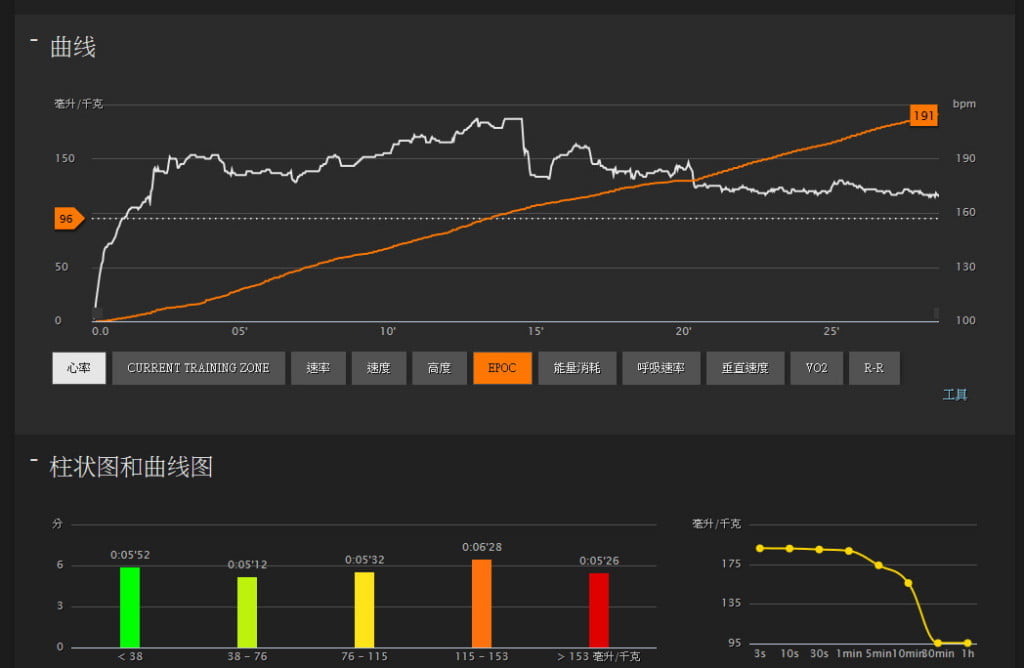以往在糖尿病照護時,常常提到運動時的血糖監測外,也要注意運動完後當天晚上的血糖,可能會有運動後的延遲效果,通常會讓血糖降低,這樣其實是有好的方向的,血糖如果因為運動而讓胰島素更敏感,那就可以少吃很多藥,尤其是胰島素分泌劑,這樣也可以讓體重減輕,透過運動、糖尿病藥物的減少,熱量的消耗等等。那怎麼看EPOC呢? 其實Suunto Ambit2 S運動錶就有提供這功能,不過要搭配ANT+心跳帶