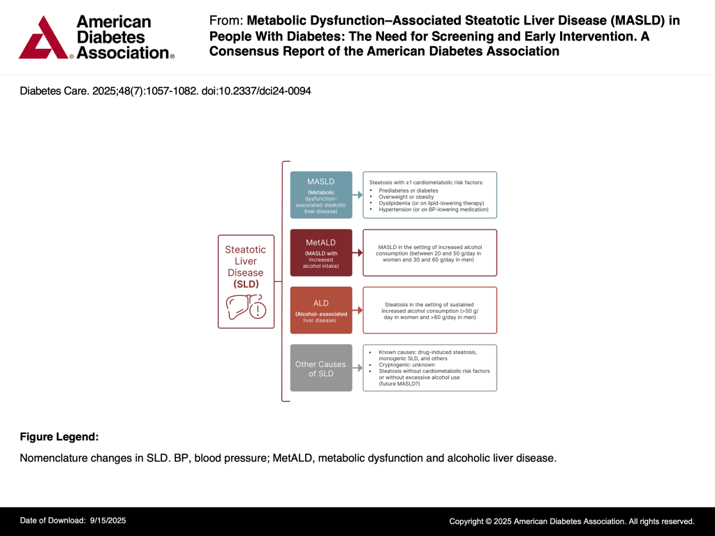 • 2023年有共識更新命名,以反映「代謝功能障礙」在病因中的核心角色。Diabetes Journals+1