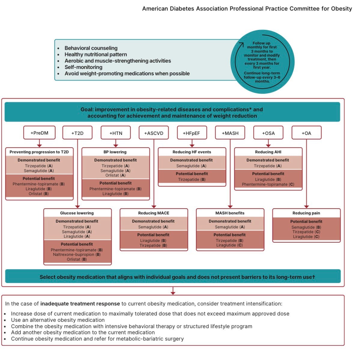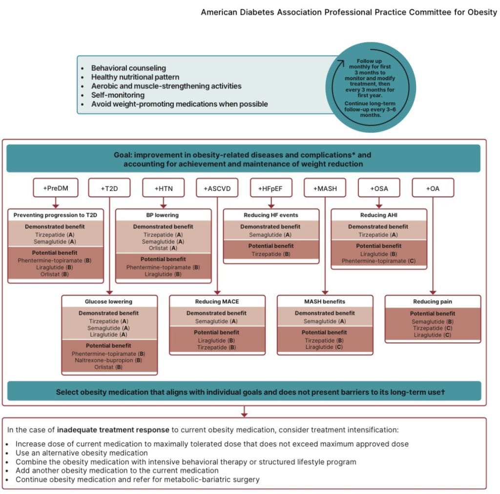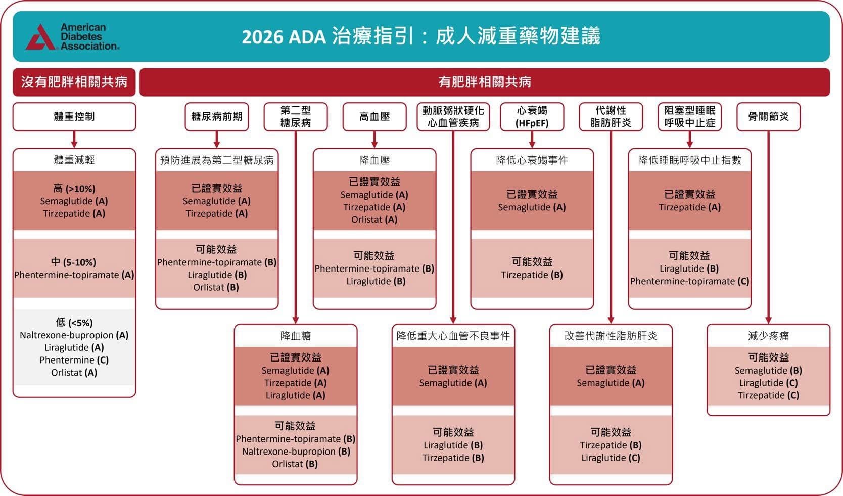 美國糖尿病協會(ADA)肥胖專業實踐委員會所提出的肥胖管理與藥物選擇指引。
