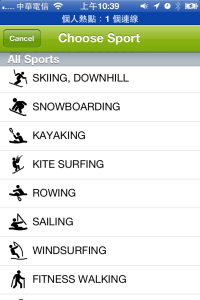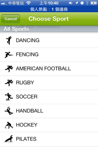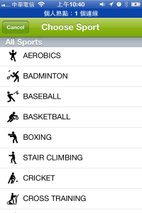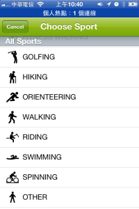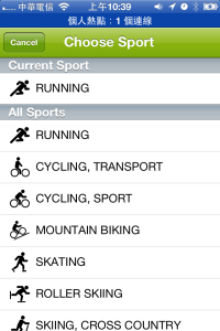 按下RUNNING部分可以切換想做的運動類型,這個國際化的軟體可是一點都不馬虎,提供的運動類型超多種