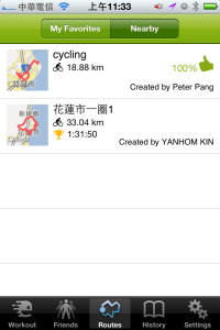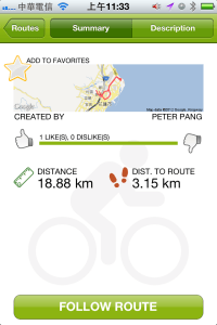 切換到Routes則可以看大家跑的路徑,可以選擇觀看、給個讚、給個爛或者跟著路徑